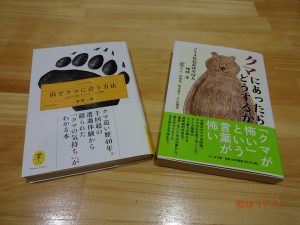 そして、第3報を受けて、弊社は「対クマさん非常事態宣言」を発し、第3種警戒モードに移行した。クマさんとの『新たな戦いの序曲』の幕開けである。「危機対応」で最も大切なのは「迅速性」だ。既に、第1報の直後に、私と家内(社主)用の「カラビナ付きクマ除けベル」をAmazonで購入。第2報後には、さらに、クマ除けホイッスルが付いたクリップ型(ベルト通しがなくても装着可能)ベルを2個追加発注した。また、敵(クマさん)の事を学ぶために関連書籍も2冊購入。