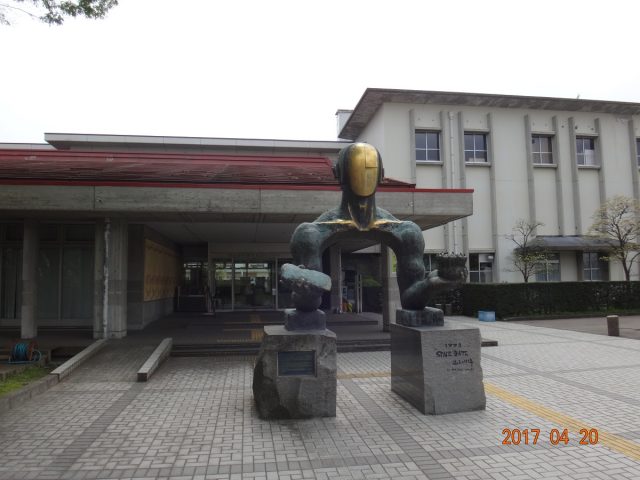 県の埋蔵文化財センターなので、ここの施設も立派である。開設は昭和52年で、県立の埋蔵文化財センターとしては全国初の施設との事。入り口前には「SPACE GATE」と題したオブジェが異彩を放つ。