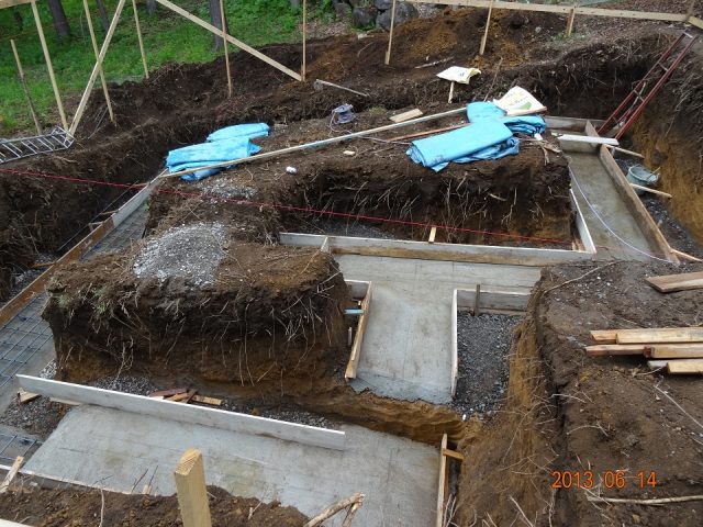 基礎工事8日目。今日からいよいよ「鉄筋工事」が始まった。まずは、布基礎底盤部への配筋作業が粛々と進められた。これまで、毎日工事に立ち会って、作業が進むのを日々楽しく眺めて来たのだが、翌15日は、所用で八ヶ岳を留守にするため工事に立ち会えない。次の立ち会いは17日になるのだが、鉄筋工事はどれだけ進んでいるのだろうか?