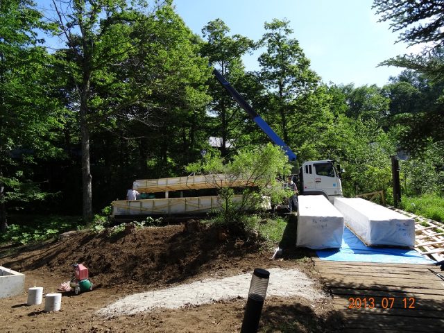 忘れもしない2013年7月12日午前8時7分、八ヶ岳本宅の枕木駐車場前にログキットを満載した大型Unic車が到着した。そして、この時を境に、2013年12日30日の一応の完工日までの私のオフィスセルフビルドの戦いは続く事になる。