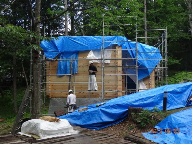 前行程であるログ壁立ち上げが「激闘」であったのに対して、新工程は振り返ってみると「苦闘」となった。どこが「苦闘」であるかは、これから8月下旬まで続く「苦闘編」回顧録で確認いただきたい。