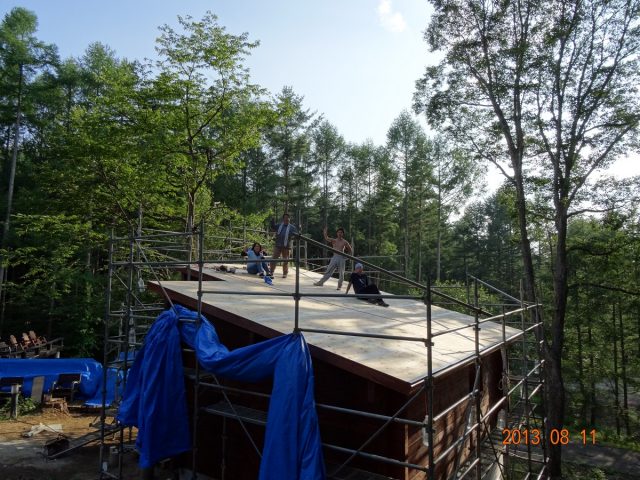 Team Triglavの屋根工事は、8月10日~11日の「野地板貼り」、12日~13日の「ルーフィング材貼り」作業へと進んだ。
