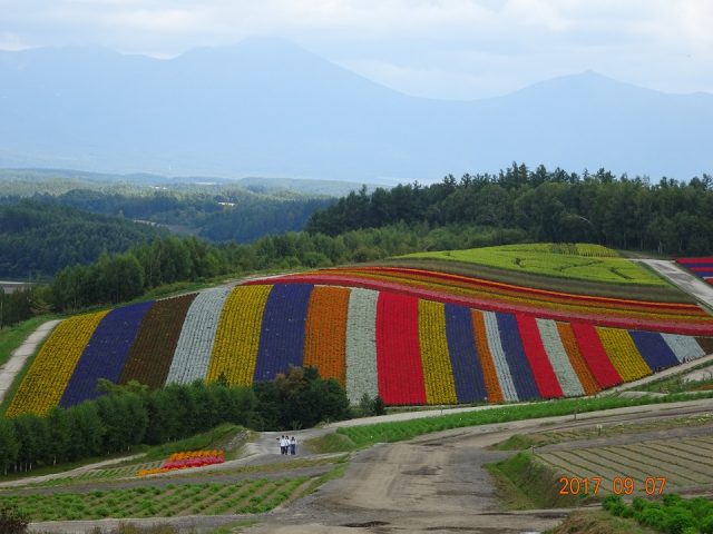 有名な「ラベンダー」の開花期は既に終わっていたが、それは承知の上で、むしろ色とりどりの初秋の花を堪能したいというのが社主のご要望だった。私は、千葉県の最南端、1年中花が咲いているような町で生まれ育ったので、花を見てもあまり感動する事はないのだが、花人街道の花畑の美しさとスケールの大きさには圧倒された。