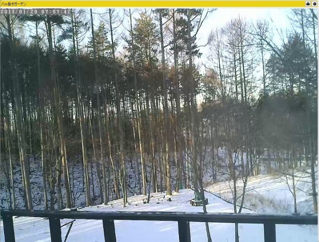 朝イチアポの前の隙間時間に八ヶ岳オフィスの状況を確認。午前8時の外気温はマイナス4.8℃。暖かい朝だ。