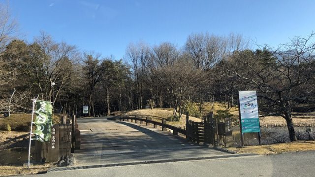 「べるが」ゲート前の橋を渡って、公園内を進む。尾白の湯の駐車場に着いたのは4時20分。