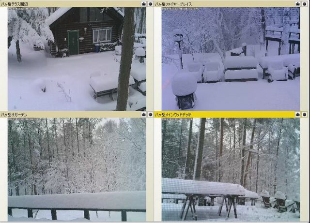 そこには「雪深く埋もれた」八ヶ岳オフィス周辺の状況が映し出された。積雪量は30cm近そうだ。この冬一番の積雪量となった事は間違いない!