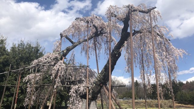 樹種は「エドヒガン」の変種、樹齢は推定「400年」、山梨県の天然記念物に指定される名木だ。私はこの桜の「艶っぽさ」が好きで、開花期に八ヶ岳に滞在した際には、ふらっとお花見に訪れる。