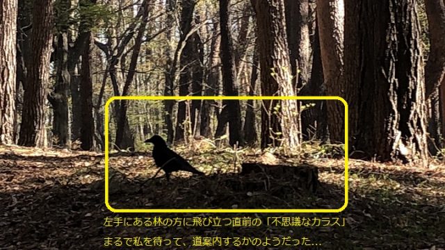 「謎の49番トンネル」を離れて、前日歩いたコースを忠実に逆に辿って行くと、やがて「不思議なカラス」と出会った森林エリアへと足を踏み入れた。