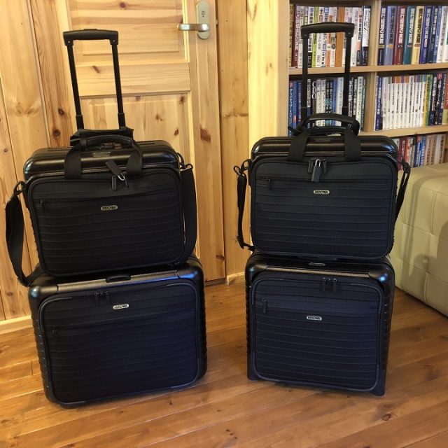 海外旅行(出張)に使える大型2個は川崎自宅の屋根裏収納、社主さまに献上した1~2泊用2個(BoleroとSalsa)はWICが収納場所である。一方、私が頻繁に使う中小型モノは、川崎自宅書斎と八ヶ岳オフィスに分散して保管。ここ数年は、出張の都度「入れ替え戦」を行い、交互に出張時の登板機会を与えてきたのだ。
