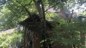 食後は、オーナーの奥様とツリーハウスに上って、何か話し込んでいた。弊社がツリーハウスの建築に着手する時期は依然として「未定」であるが「ドームハウス さとう」さん訪問が、社主さまからのゴーサインを得る上で大いにプラスに作用するのは間違いないだろう。