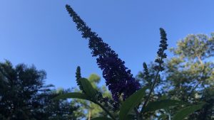 オフィス周りでは、ホスタさん達に続いて、ブッドレアが開花期を迎えている。昨年よりは2週間程早いだろうか。最初に開花したのは、オフィスと枕木駐車場の間に2015年に植えた「パープル」種である。