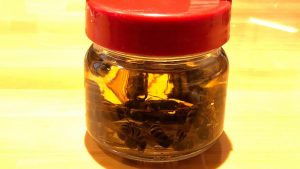蜂に刺された時の「特効薬」という事で、本宅購入の際にお世話になった不動産屋さんにいただいた「スズメバチの焼酎漬け」を脱脂綿に浸して、刺された場所に何度も押し当てた。続いて「キンカン(私は効くと信じている)」、抗ヒスタミン剤入りの軟膏と塗って、最後に保冷剤を包んだタオルで冷やす。幸いなことに「アナフィラキシー・ショック」らしい症状は現れなかった。そして、コガタスズメバチに対する『報復』は、その日は見送る事にした。