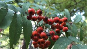 今朝午前7時の八ヶ岳の外気温は16.6℃。昨日までの暑さは「悪夢」だったのだろうか? 前回滞在時に漂い始めていた「秋の気配」はさらに濃くなっており、庭の木々の実は一気に色付き始めてきた。