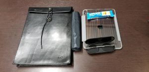 テーブルの上に、今日の私の仕事のお供である「國鞄(コクホー)」のレザーエンベロープを置いて、中身をすべて取り出す。