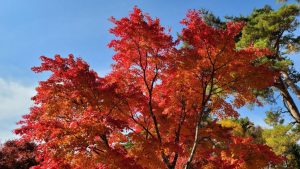 ヨドバシカメラ研修センターの楓の紅葉は真っ盛りで、駐車場は見学の車がいっぱいだった。私もD4を駐車して、ちょこちょこっと写真撮影。