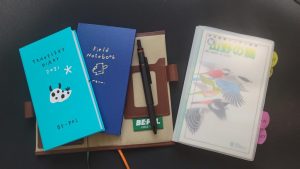 かなり使い込んだはずなのだが、カバーはまだ美しく、ホルダーに刺さったままだったペンの方も何の問題なく筆記可能だった。ダイヤリーとペンが現役だった頃の事を懐かしむ。