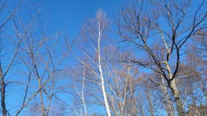 そんな事を考えながら、ウッドデッキに出て深呼吸。八ヶ岳ブルーの空の下、白樺の幹が美しい。