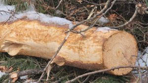 財産区林内には、樹高20mはあろうかという赤松の風倒木があるのだが、その木の幹も、見事に美しくピーリングされていた。