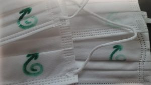味気ない白い「不織布マスク」を「井戸尻マスク風」に改造できるように注文した「井戸尻マークスタンプ」が一昨日、自宅に届いた。