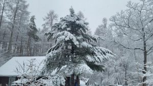 これまでの春のような陽気から一転、八ヶ岳オフィス周辺は朝から雪が降っている。