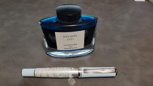 インクはパイロットの「色彩雫」シリーズを使っていたはずだ。自宅書斎のインクコーナーを探したら、すぐに「紺碧」が見つかった。そうだ、このインクだ!