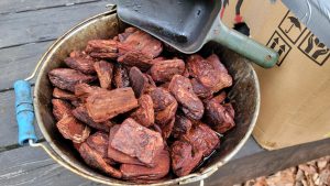 第1の新装備は《結界チップ》。「結界石《改》」のクレオソート臭に慣れが出てきたと考えられる鹿軍団の「嗅覚」を刺激するもので、木酢液の原液に大型のパークチップを丸1日浸して作り上げた「新装備」である。