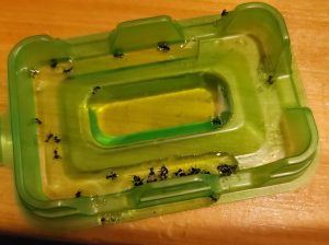 この際に、わざと容器の外に2~3滴垂らすと蟻が集まってくるのが早くなる。これは経験から得た小技である。