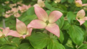 まずは、2本植えてある「ヤマボウシ」の開花が始まった事が目を引いた。