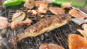 私は基本的には川魚を食べない。社主さまは「ニジマス」が好みなのだが、今日は「ヤマメ」を焼いていた。食材は自分が好きなのを勝手に焼くのがお外BBQルール。1時間程、各々がお気に入りの食材のBBQを楽しんで、最後に使ったペーパー食器を焚き火に放りこんだ。