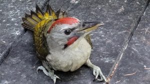 ゆえに、アオゲラ(キツツキ)で体長が25cm程度もある「彼」の事故は、我が八ヶ岳ライフにおいて「異例中の異例」の出来事であった。