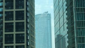 ビルを覆うガラス越しに林立する東京の高層オフィスビルが見える。昨日までの森林に守られた暮らしとは別世界だ。