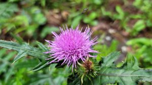 敷地内の至る所で「秋アザミ」の開花が始まっている。