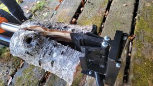 エッ、こんなに簡単に割れるの (°0°) 最初にチャレンジした直径17cm程の枝は「瞬殺」。
