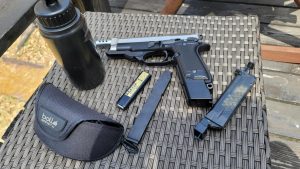結局、東京マルイのベレッタ(Beretta) M93Rを「専守防衛」のために導入する事を決定。