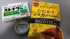 それに1年中愛用しているのど飴「たたかうマヌカハニー」を口に運ぶ回数が、花粉症の時期はかなり増えるかな?