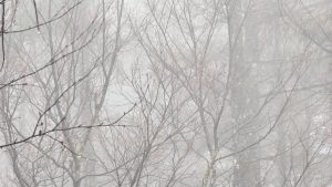 雨が降る中、霧が立ち込めては薄れ、立ち込めては薄れの繰り返し。