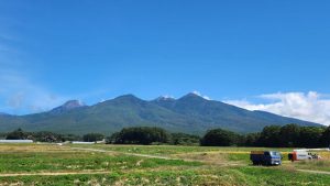オフィスに戻ろうとミニパジェのドアを開いた際、無意識に南アルプスの山々の方角を見てしまった。