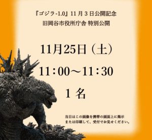 普段は建物内は非公開なのだが、「ゴジラ -1.0」の公開記念で、23日、25日、26日と1組30名ずつ1日8回、3日間で計720名に「特別公開」するというイベントを開催中。