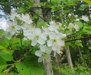 ソメイヨシノとウワミズザクラは我が家の敷地内にあるが、ヤマザクラとミヤマザクラは財産区林に自生する木だ。