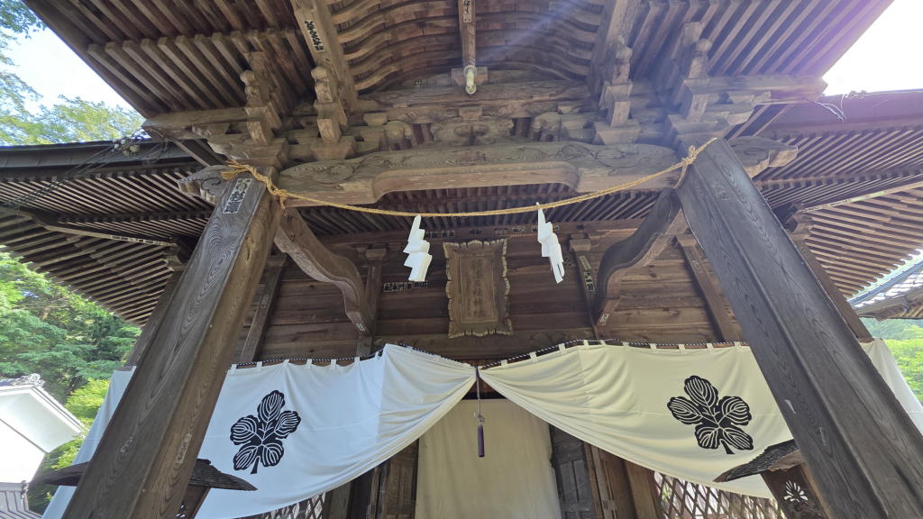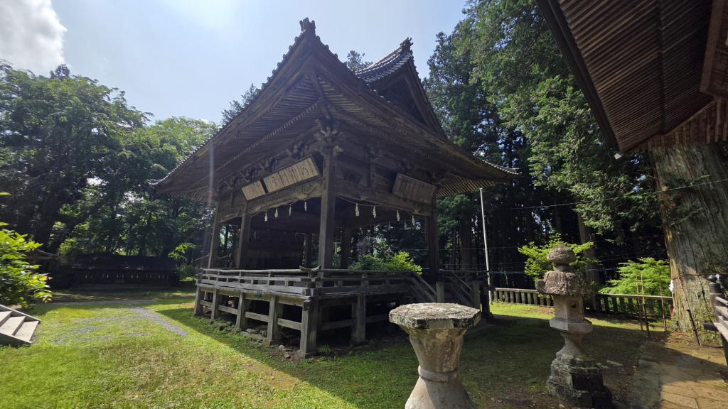 拝殿で参拝した後、映画「君の名は。(新海誠監督作品)」のヒロイン 三葉が舞を踊っていたシーンの舞台のモデルとなった(らしい)「神楽殿」を鑑賞。