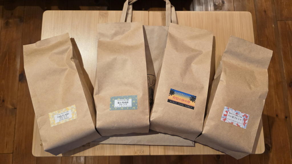 購入するのはいつも、「富士見高原」「八ヶ岳」「テーブルランド」の3つの定番ブレンドに「季節のブレンド」をそれぞれ200gずつの計800g。