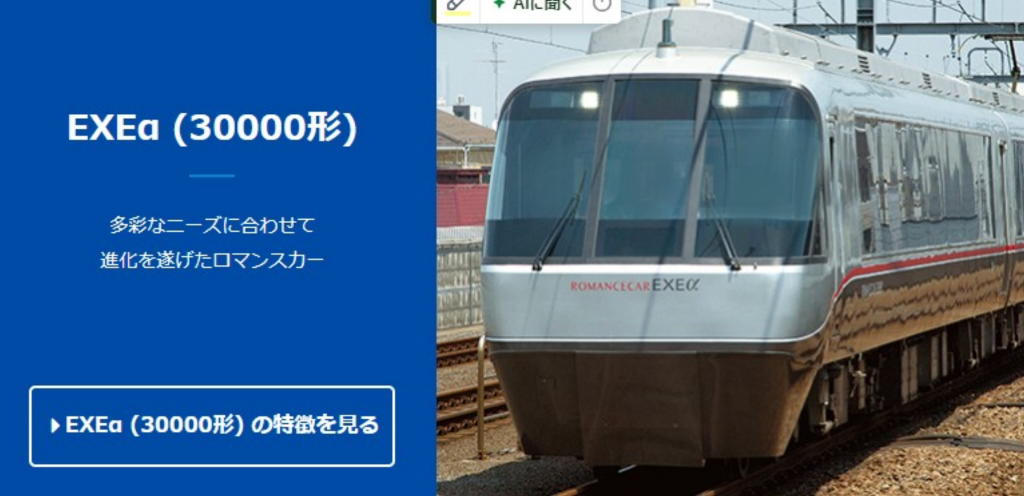 東京メトロホームウェイが MSE(60000型)、昨日の行きが GSE(70000型)、帰りが EXEα(30000型)で、他に、EXE(30000型)があるらしい。