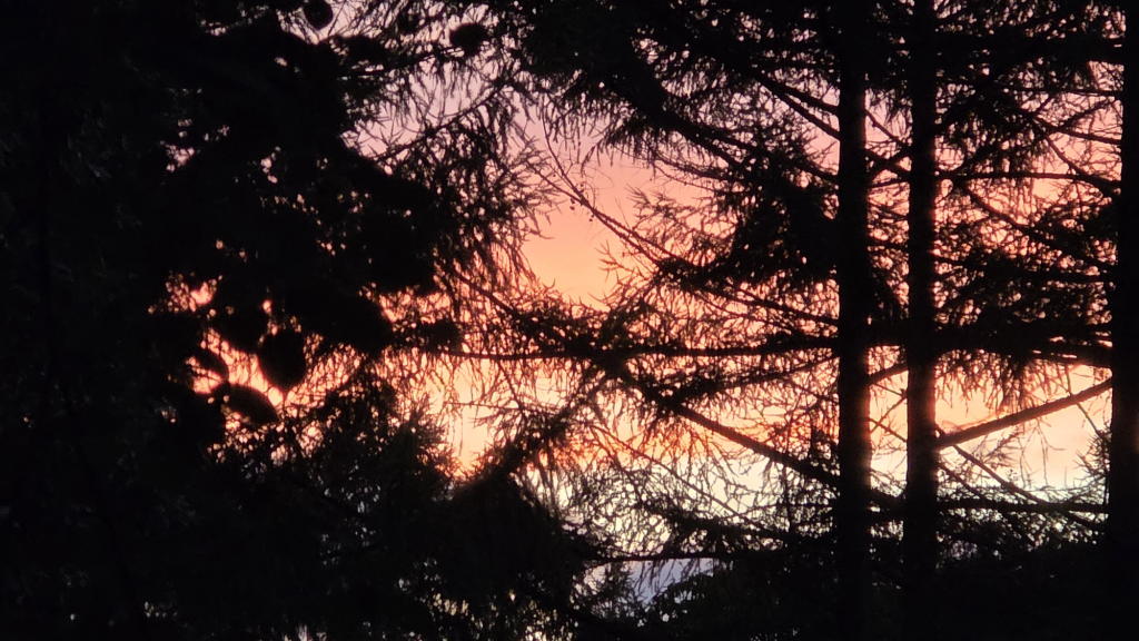 そんな事を考えながら、今日も財産区林の樹間に沈む夕陽を眺めていた。