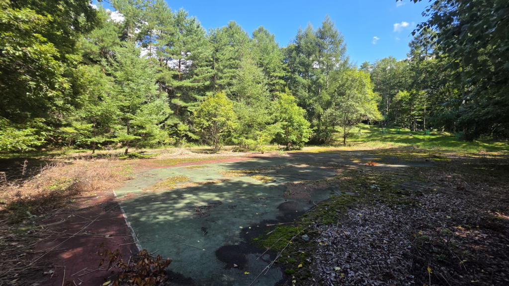当初は、テニスコートは全面撤去する計画だったのだが、想定していた以上にしっかりした構造(日本鋪道による施工らしい)であり、駐車スペース、薪や工具小屋のベースとして活用するのが合理的(そうしなければ勿体ない)と判断した。