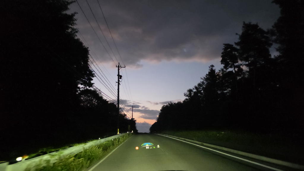 しかも、鉢巻道路走行中は、上空はすっぽりと厚い雲に覆われていたので、余計に前方の明るさ(赤さ)だけが目立ったのである。