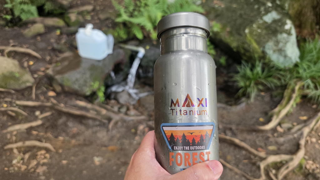 そして最後に、大滝湧水の御神水を持参したチタンボトルにお裾分けしてもらった。
