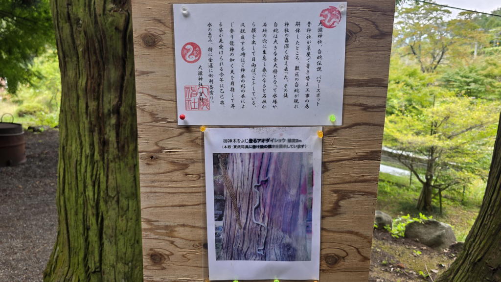 さらに拝殿前のご神木には「白蛇伝説」に係る解説文が…