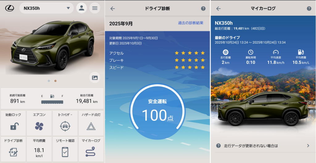 9月も100点。これで安全運転診断は、3月から7ヶ月連続で100点だ。