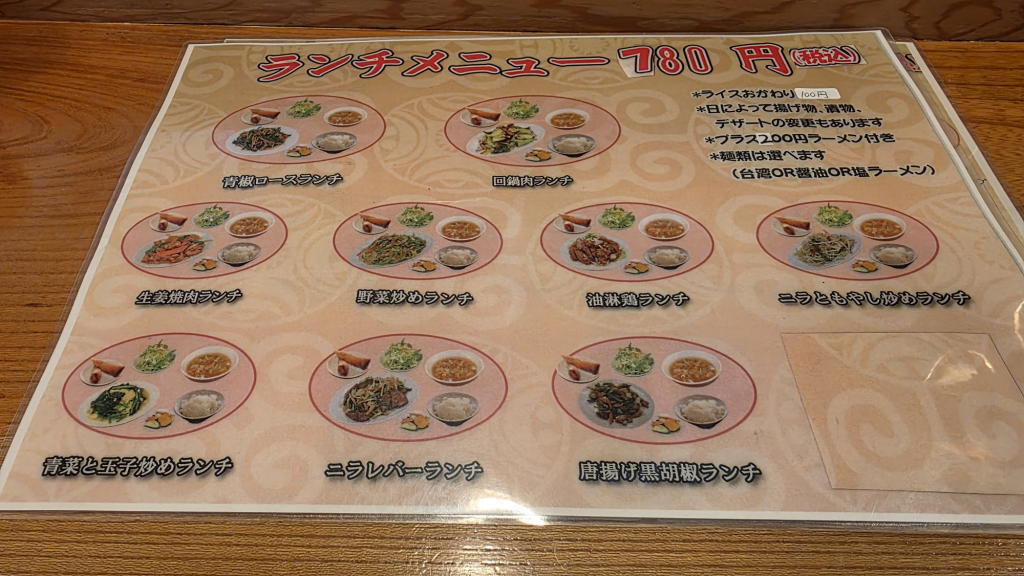 ランチメニューだけで17種類。値段はすべて780円(税込み)。この他にラーメンセットもある。