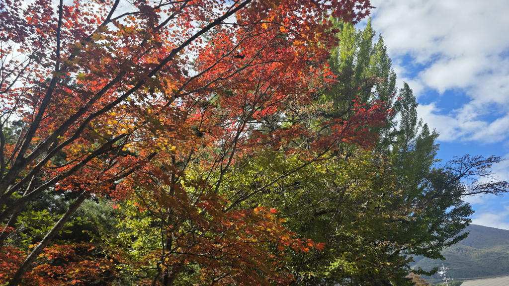 オンライン講演開始には、まだ時間があったので、富士見公園に立ち寄って、紅葉の進み具合をチェック。